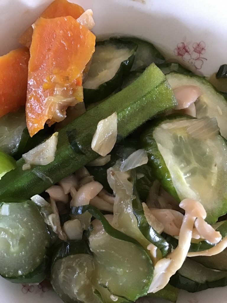 dishes – a few types of vegetables i.e. carrots, potato, lady fingers, tomato, okra, leafy vegetable.